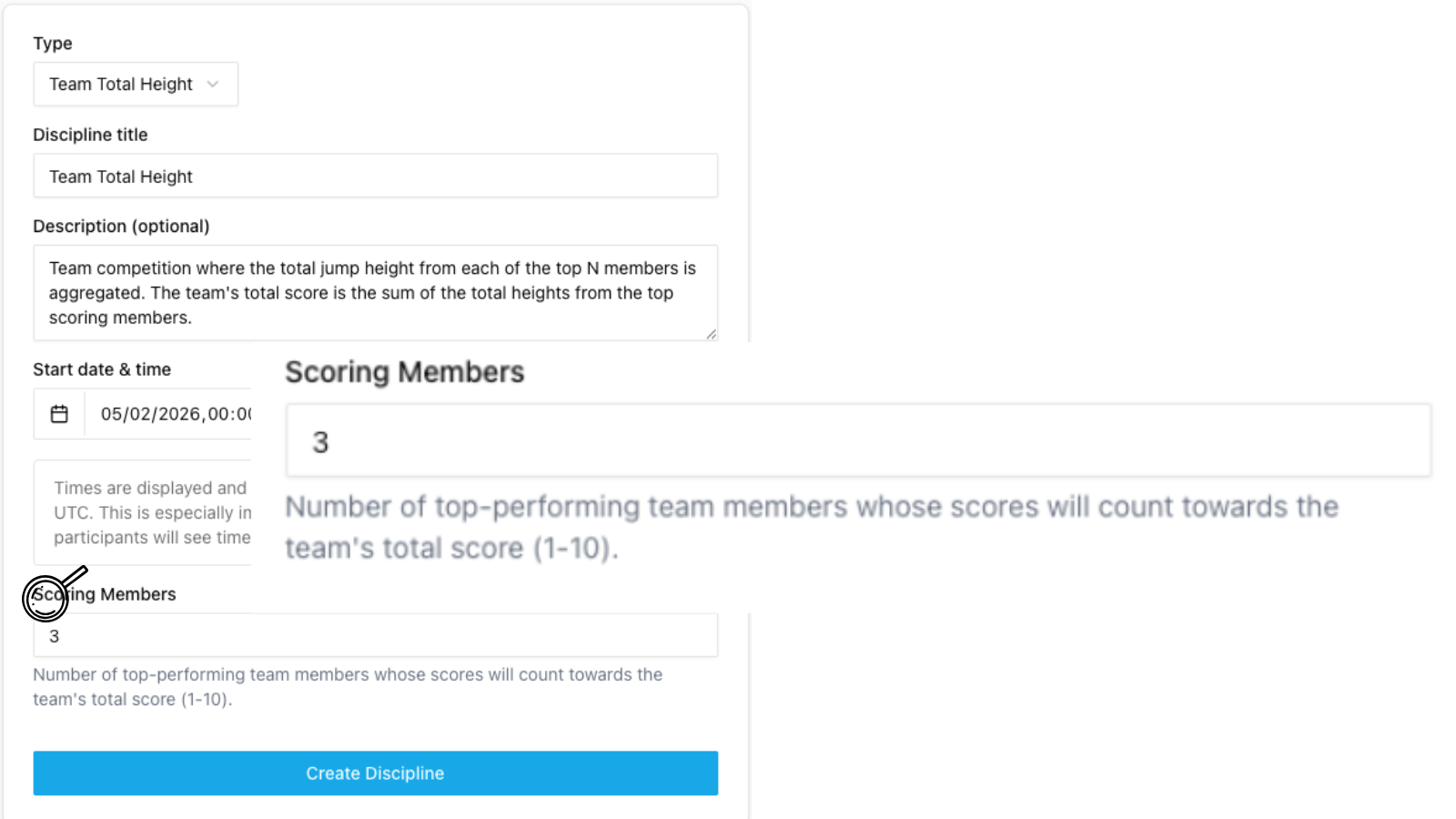 Team disciplines allow you to choose how many of the top scores count towards the teams total.