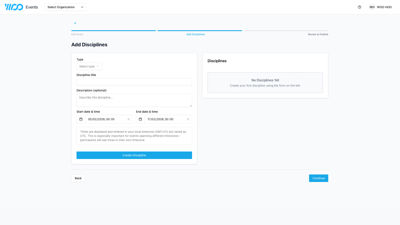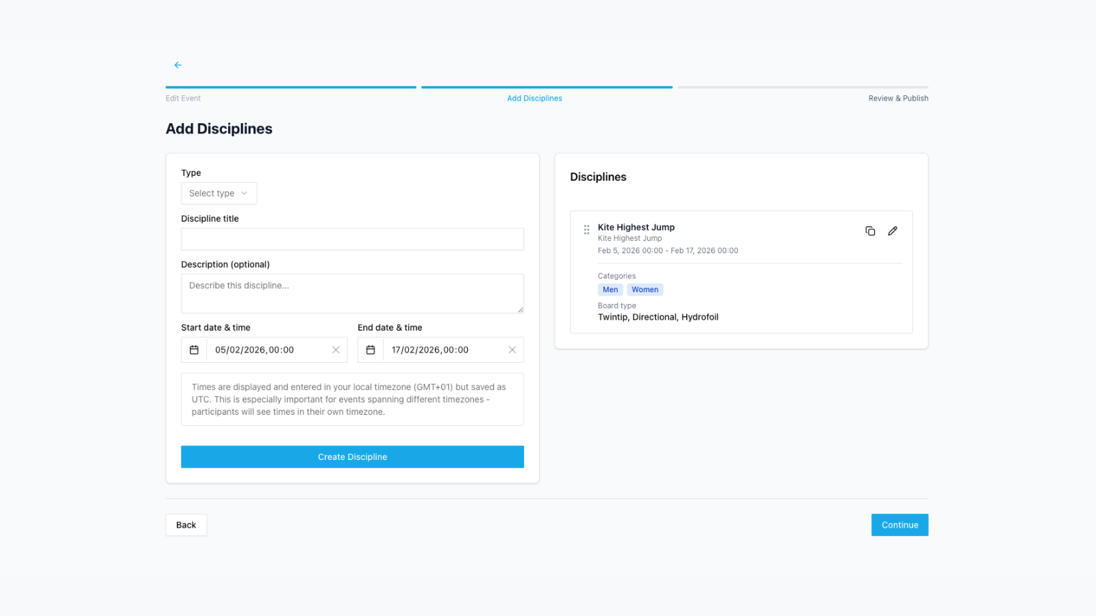 Now you click "Create Discipline" to add to your event.