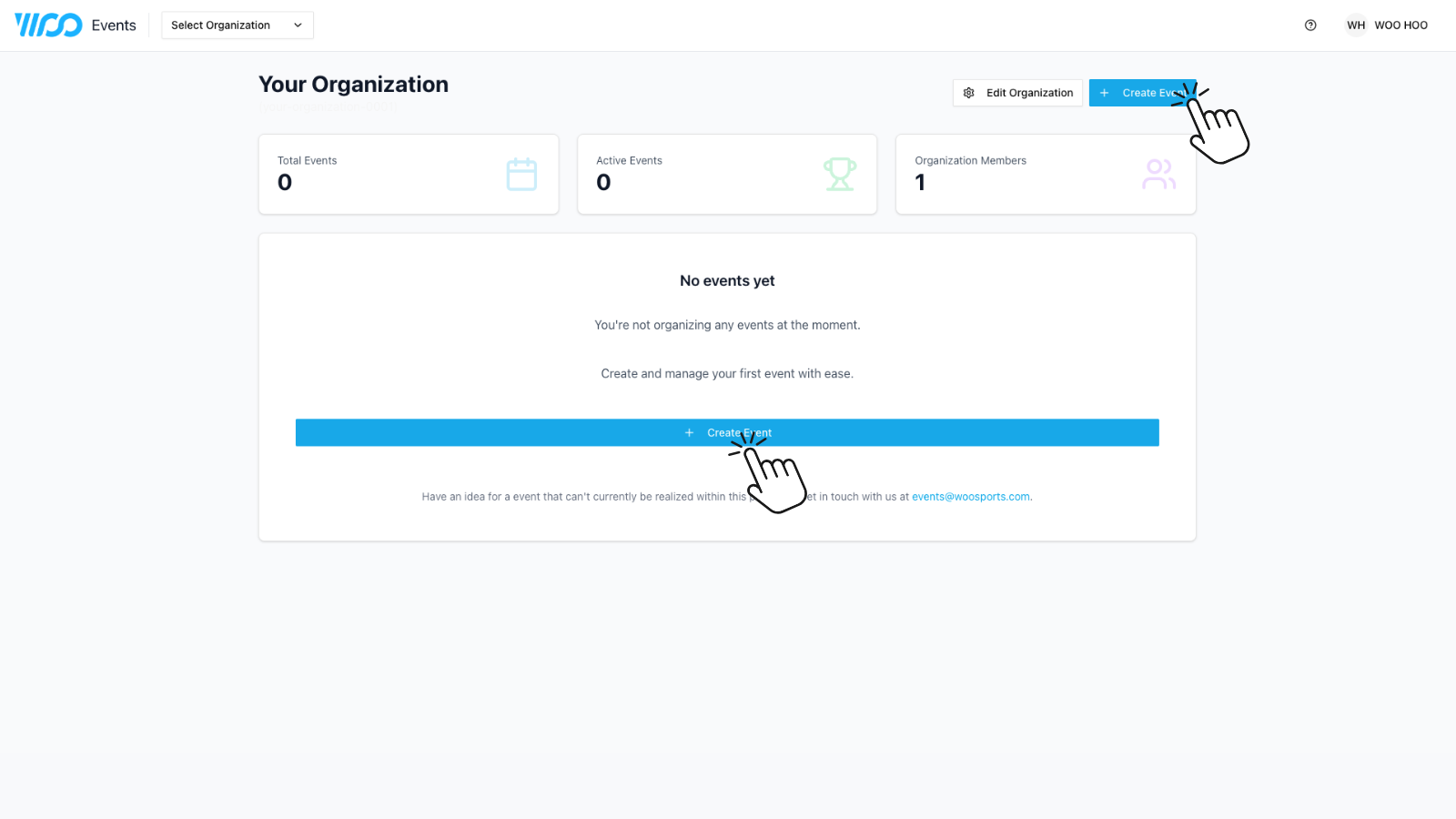 - From your dashboard, choose any one of your "+ Create Event" buttons.