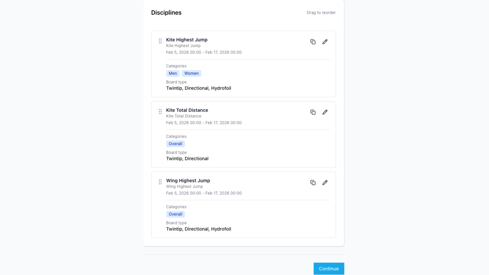 Repeat this process for every discipline you wish to run in your event and click continue (Again you can add them all if you wanted😮💨).